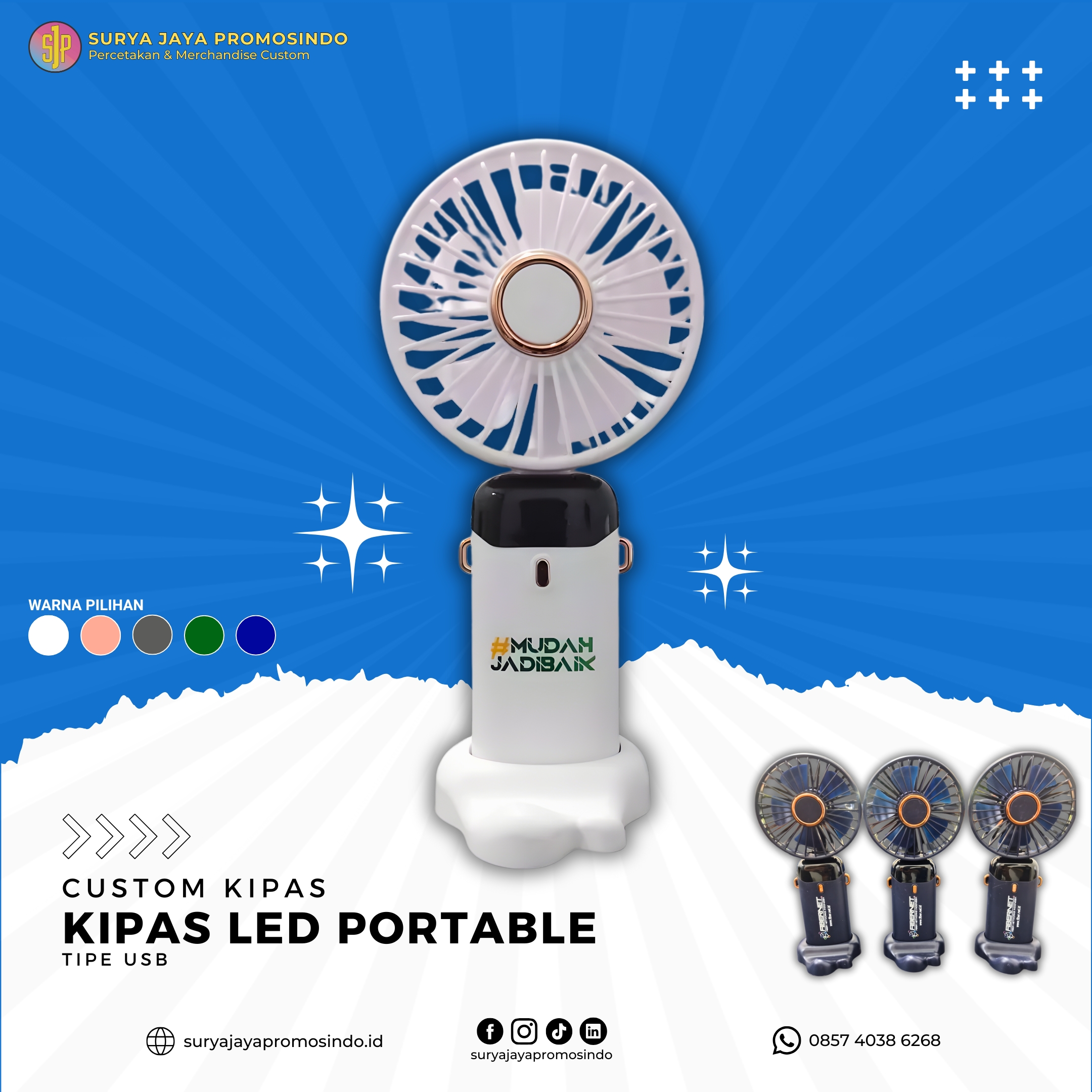 Saya pesan kipas mini custom untuk acara kantor, hasilnya benar-benar di luar ekspektasi. Cetakan logo tajam, warna tidak pudar, dan kualitas kipasnya kuat. Banyak peserta yang suka dan masih dipakai sampai sekarang. Pelayanan juga cepat dan komunikatif. Pasti order lagi!